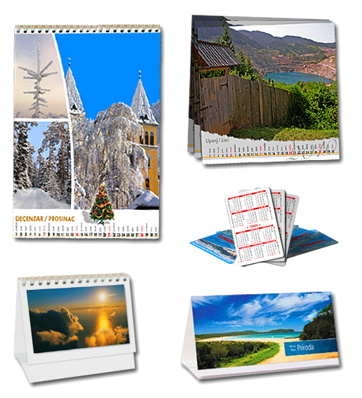 Sadržaj kalendara osim naravno samog kalendarijuma treba da na najjednostavniji i najupečatljiviji način predstavi vašu firmu, vaše proizvode i usluge kao i kontakt podatke. Kalendari su svakako dobar i upečatljiv poslovni poklon koji ima reklamno – upotrebnu vrijednost tokom cijele godine.